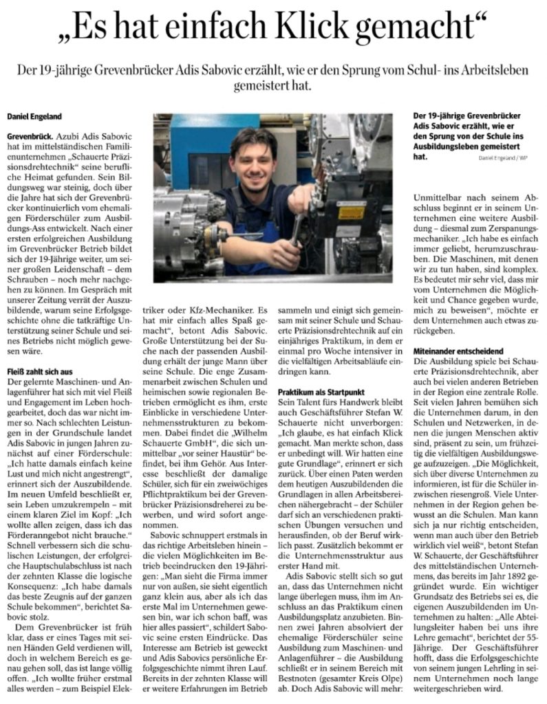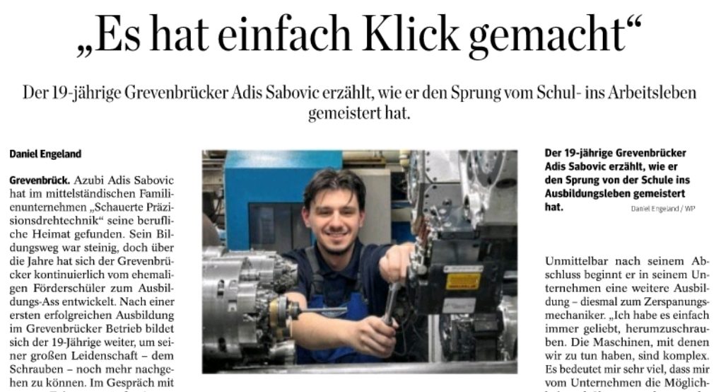 Unser Auszubildender Adis Sabovic hat in der Westfalenpost ein interessantes Interview über seinen beruflichen Weg bei uns gegeben:
